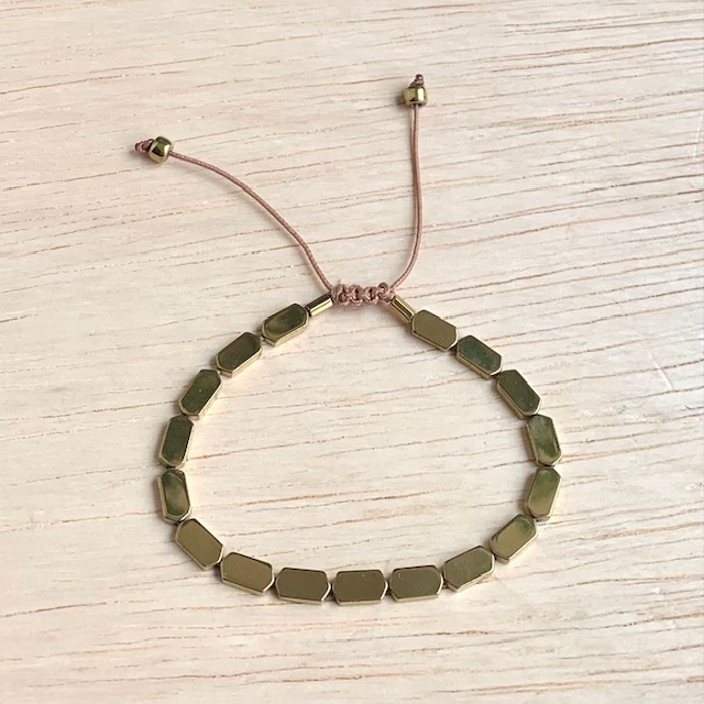 Pulseira confeccionada com Pedra Hematita dourada e fio encerado. Regulável