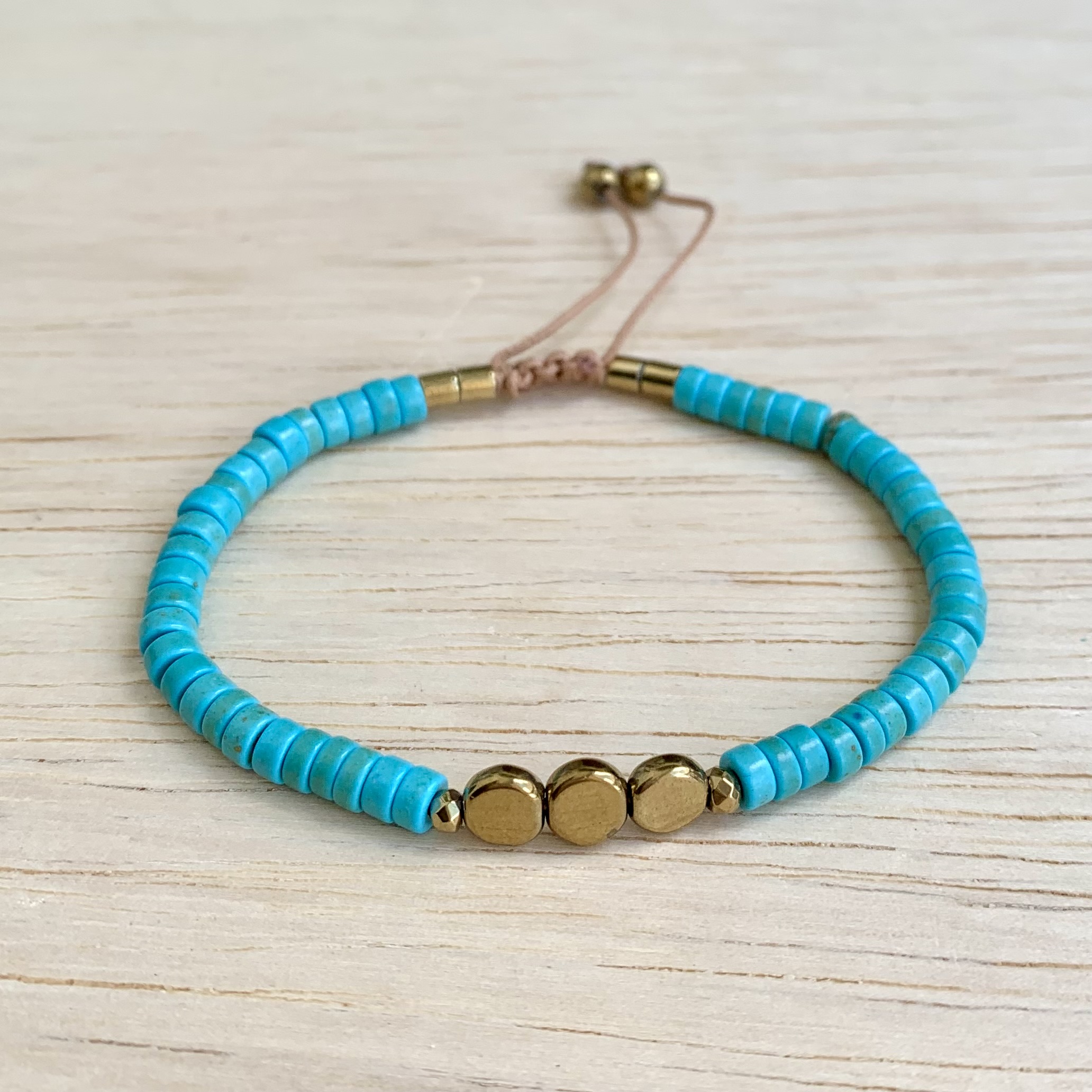 Pulseira confeccionada com pedra howlita e Pedra Hematita dourada. Tamanho regulável